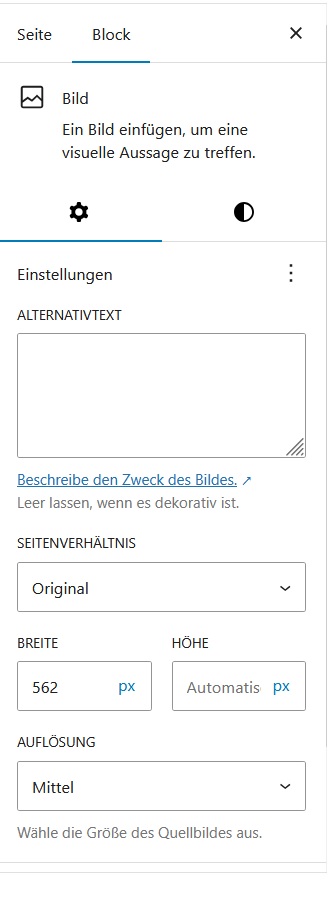– das Bild verlinken (Mediadatei oder URL eines Bildes)