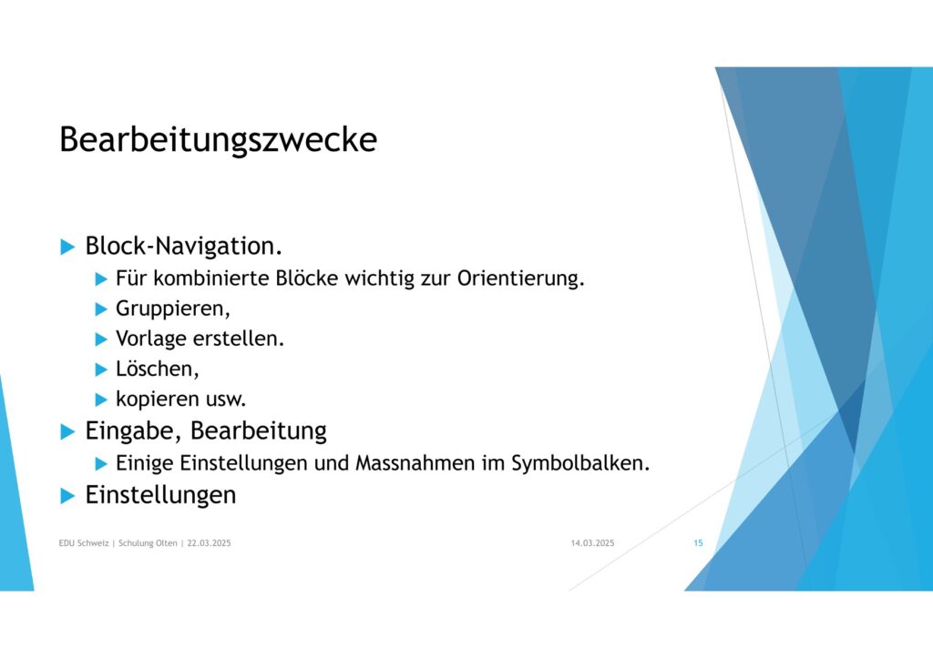 • Für kombinierte Blöcke wichtig zur Orientierung.Gruppieren,Vorlage erstellen.