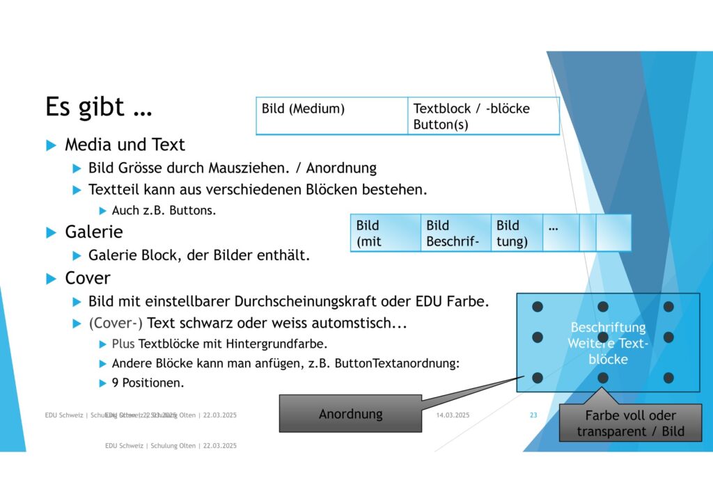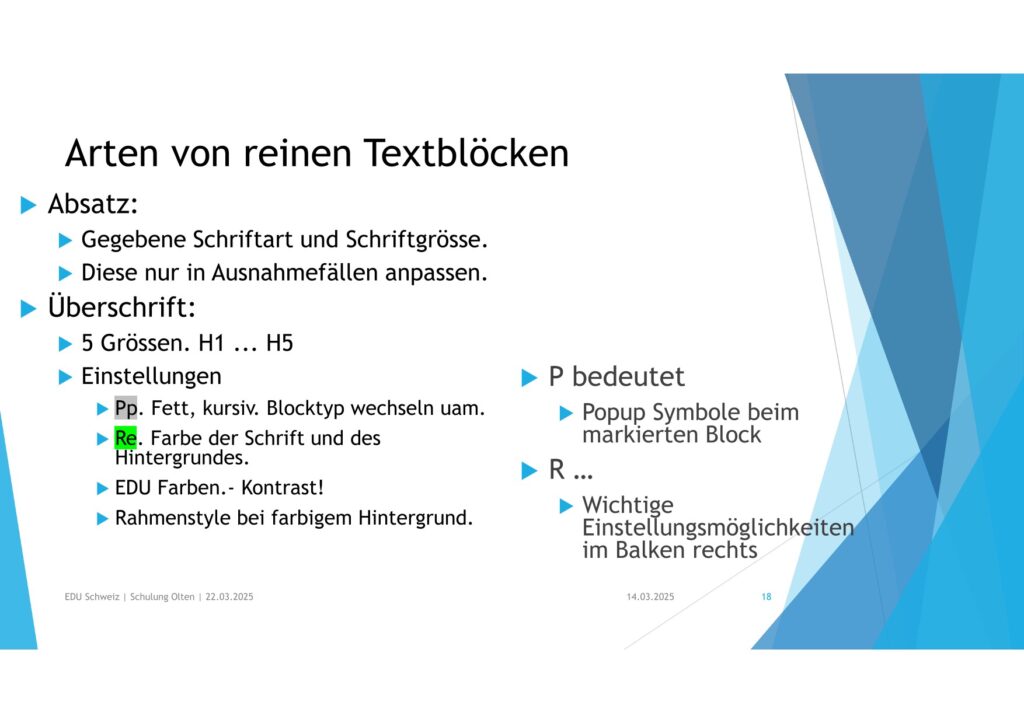• Titel und Texte kannst Du für sich einen Style bestimmen (Text- / Hintergrundfarbe)