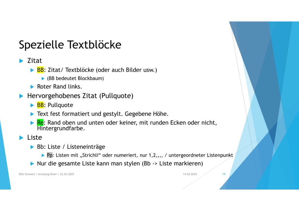 Spezielle Textblöcke