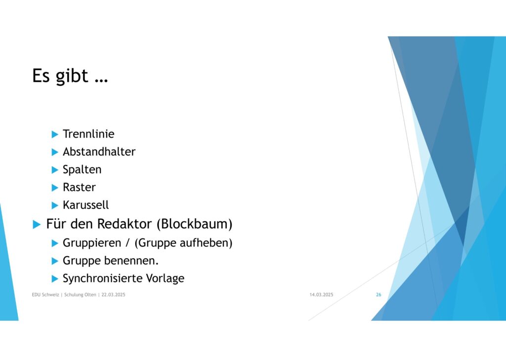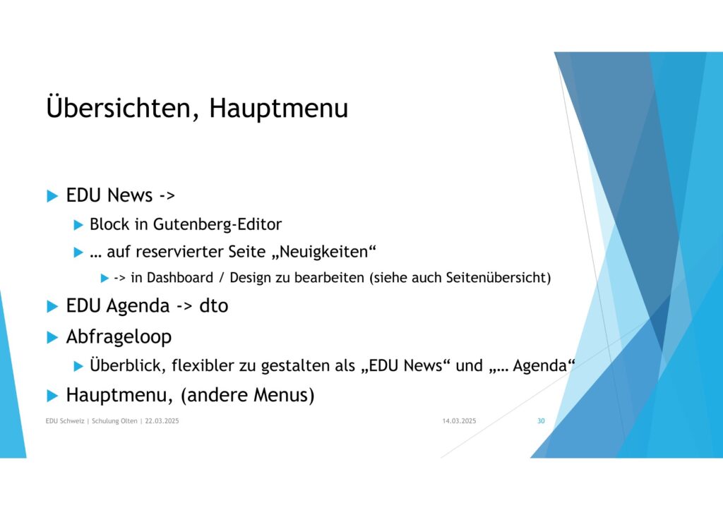 • Überblick, flexibler zu gestalten als „EDU News“ und „… Agenda“