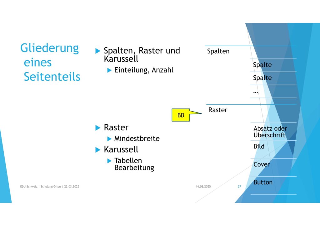 • Spalten, Raster und Karussell