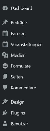 • Design -> Menus, Sidebar anpassen (Sidebar -> Widgets)